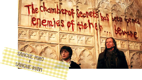 Em Harry Potter e a Câmara Secreta, a narrativa sai do âmbito restrito da vida do personagem principal e se envereda por caminhos que serão retomados em outros livros da série. A possível pureza ou impureza do sangue dos bruxos aparece aí e, para mim, é o elemento fatídico que me fez pensar em Harry Potter confrontando as noções de raça tão caras ao Estado nazista. Claro que eu não pensava nisso aos 12 anos de idade. Naquela época a única referência que eu tinha latente sobre a Guerra havia sido pesadelos depois de ver A vida é bela.
