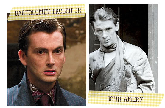 Dia desses, descobri que John Amery foi o único britânico condenado por alta traição durante a Segunda Guerra Mundial. Não sei se foi de propósito que o ator que interpreta Bartô Crouch Jr (David Tennant) nos filmes de Harry Potter tem algumas semelhanças fisionômicas a esse homem. Suas histórias na realidade e na ficção são muito parecidas. John Amery era filho de John Leopold Amery que se tornou ministro britânico durante o governo de Winston Churchill. Assim como Amery, Bartô Crouch herda de seu pai o nome, e esse ocupa um cargo importante no Ministério da Magia. Leopold Amery colocou seu cargo à disposição do primeiro-ministro britânico, mas Churchill alegou que um pai não deve pagar pelos erros do filho. John Amery foi condenado à morte por enforcamento em 1945 por traição por sua colaboração com os nazistas. O personagem fictício Bartô Crouch Jr leva um beijo de um dementador, coisa que é narrada como sendo uma condenação pior do que a morte.