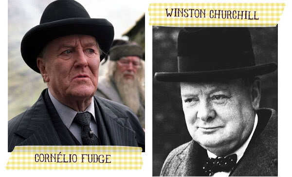 A referência aqui eu acho mais facilmente identificada pelo visual. E acho que é o caso mais expressivo do não-maniqueísmo. Por ser britânica, a autora poderia ter construído Cornélio Fudge como uma exaltação a Churchill, mas não é isso o que acontece. Ambos governam em momentos conturbados em seus mundos e contextos. Churchill se torna quase um herói de guerra com a vitória dos Aliados nos confrontos contra o Eixo. Mas, claro, como todo personagem histórico é buscado e reconstruído através de muitas biografias. Cornélio Fudge não é menos controverso.