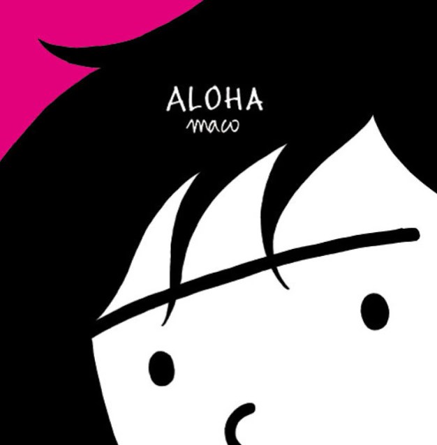 Um dos poucos planos que fiz antes de vir para a Argentina foi o de procurar o primeiro livro de Maco chamado Aloha. Na cidade onde moro não encontrei em nenhuma das livrarias e acabei pedindo a uma amiga que foi a Buenos Aires para me trazer de sua ida à livraria El Ateneo. Assim, pude acompanhar Maco em sua jornada surrealista de 64 páginas na versão rio-platense. Existe também a versão espanhola do livro, com uma capa diferente e possível de ser comprada aqui. Maco me disse que já não há mais Aloha encontráveis à venda no Uruguai; em Buenos Aires, além d’El Ateneo, outra livraria que tinha bastantes exemplares era a Yenni, pro caso de alguém viajar à capital argentina e ter vontade de levar um de lembrança.
