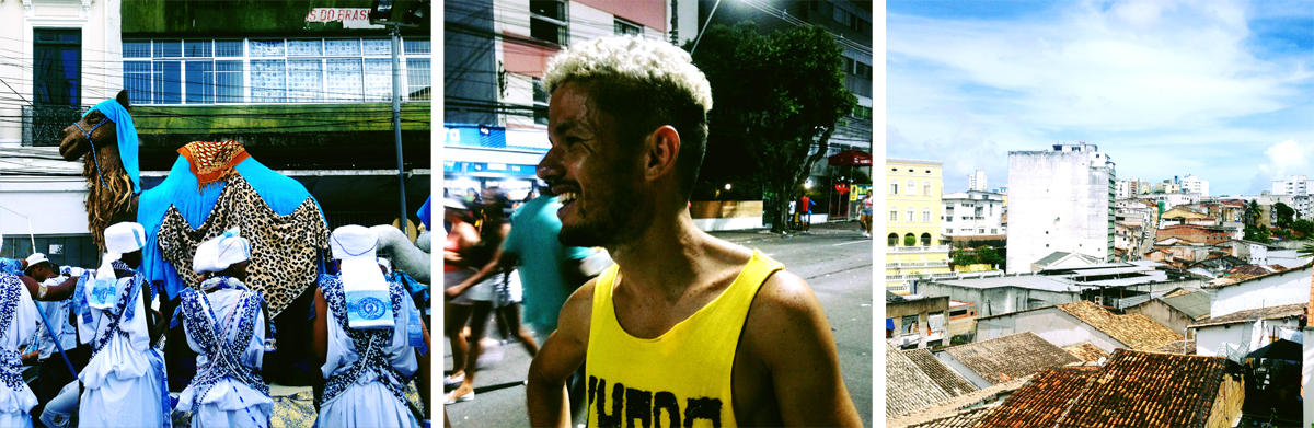 Eu não sabia que o Carnaval na Bahia era tudo o que eu queria até poucas semanas antes de ir. Nunca tinha considerado viajar nessa época, ir atrás de todos os trios elétricos possíveis, criar metas mentais de coisas que eu gostaria de comer quando pusesse o pé na rua. A verdade é que quando eu era muito pequena cantava sem parar “A cor dessa cidade” e dizia que a música era da Daniela Melculi, porque ainda não me saíam bem os “r”. Ser criança nos anos 90 era ter de cor e salteado todas as músicas do “É o Tchan!” na cabeça, tentando adivinhar o próximo destino improvável do grupo, e ver propagandas de televisão reproduzindo o tal do axé music adoidado. Ter nascido nos anos 90 também me introduziu desde cedo o clipe do Michael Jackson no Pelourinho e me fez acordar na Copa do Mundo de 2002 na hora em que o Olodum começava a tocar o Hino Nacional. O Carnaval da Bahia era só o condensamento de alguma coisa que eu sempre vivi. Porque eu podia imaginar que ia ver Daniela e Olodum em algum dos circuitos, que ia me emocionar com a saída do Ilê Aiyê na ladeira do Curuzu. Mas eu não sabia que nas duas primeiras noites eu estaria de repente tão perto de Caetano Veloso (no trio de BaianaSystem e depois no trio do Cortejo Afro) e que quando menos esperasse ia olhar pra cima e ver Pepeu Gomes, todo de preto, no sol de verão da Bahia, desligando a guitarra. De repente eu me dei conta de que a Bahia era o sinônimo de música pra mim, porque mesmo quando me meti a ouvir rock na adolescência, Pitty e Raul Seixas não eram alienígenas no mp3 player de 256mb.